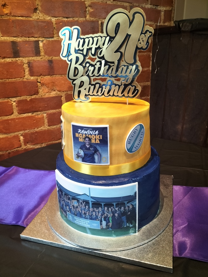 A magnificent 2-tiered birthday cake, personalized and in theme.